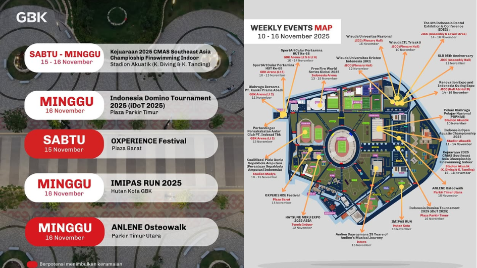 11 Event Jakarta di GBK Akhir Pekan 15-16 November 2025, Banyak Acara Olahraga hingga Konser